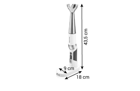 tyčový mixér GrandCHEF je poháněný výkonnou vestavěnou Li-Ion baterii 7,4 V. To znamená, že během provozu není připojený do elektrické sítě a při jeho použití nejste nijak omezováni napájecím kabelem.Přístroj má