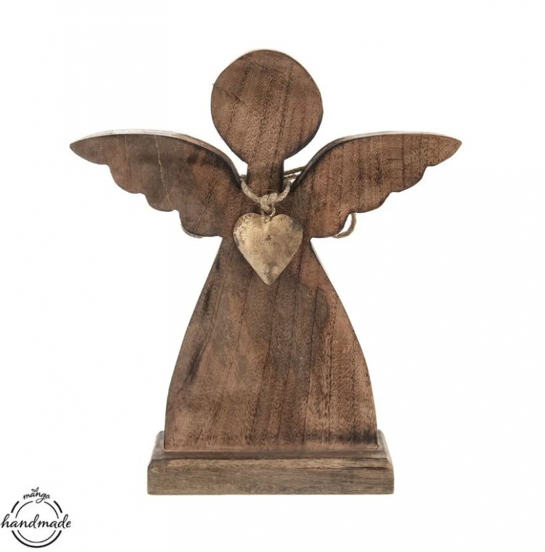 Anděl dřevo MANGO s kovovým srdcem