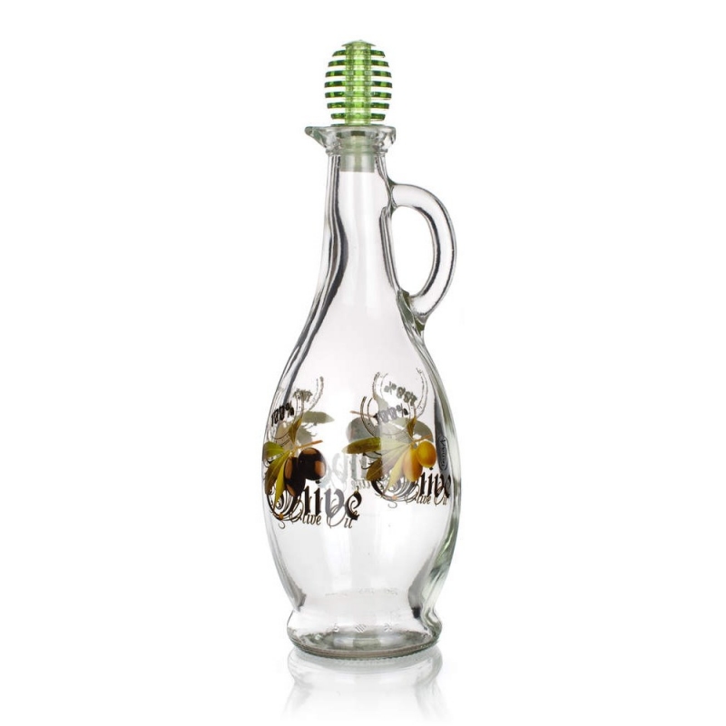 Lahev na olej 750 ml s dekorem 100% Olive, skleněná lahev s ouškem a nálevkou, plastová zátka s těsněním. Celý popis >