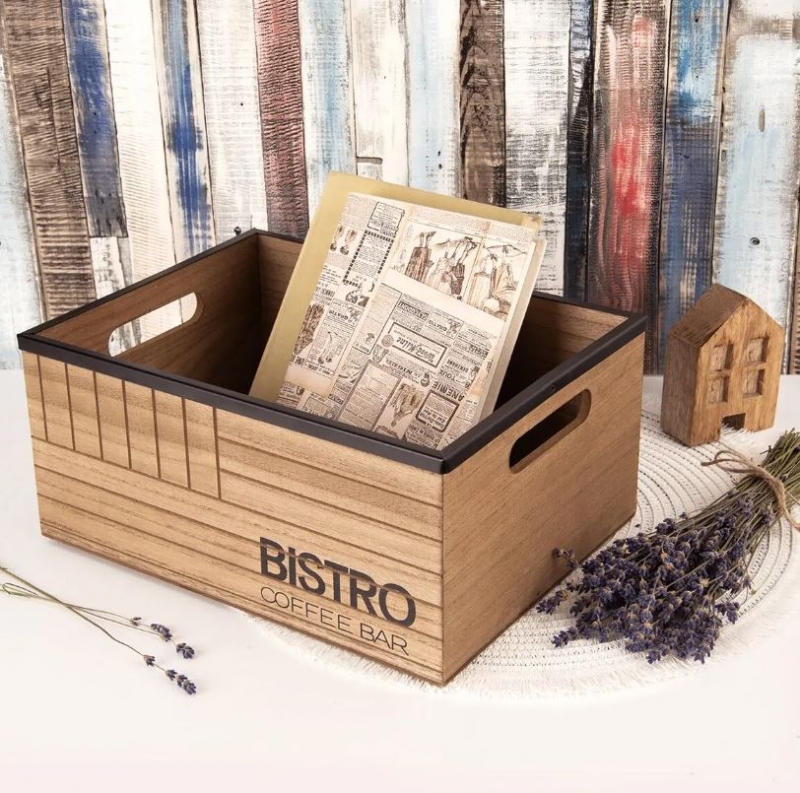 Větší bedýnka s nápisem BISTRO a kovovým lemem. Celý popis >