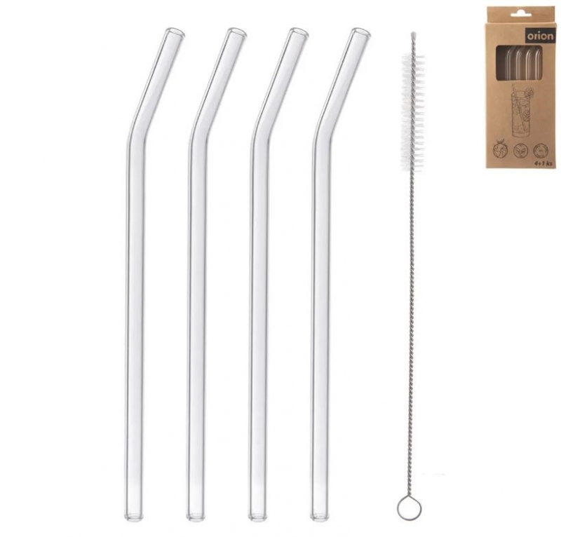 Brčko borosil. sklo nápojové zahnuté 4 ks 20 cm+kartáček