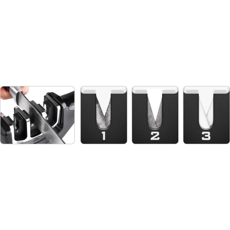 3-stupňový brousek na nože vyroben z ABS plastů se soft úpravou a protiskluzovou základnou Celý popis >