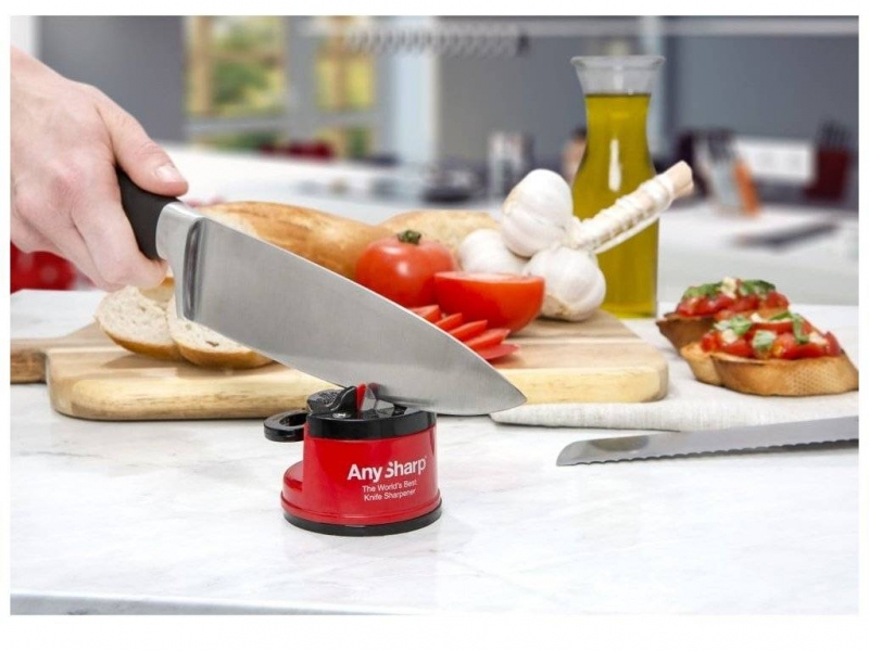 #EnterOstření probíhá několika jemnými tahy nože po ocelovém materiálu, které snadno provedete jednou rukou bez použití síly. Diamantem ostřený karbid wolframový mechanismus skvěle ostří také vroubkované nože. Brousek na nože AnySharp brousí nože z oceli nerezové, karbonové i tvrzené a také s antiadhezním teflonovým povrchem. Celokovové tělo je opatřené polymerovým krytem dodává brousku elegantní moderní vzhled. Díky jeho rozměrům 6,2x6,2x6,7 cm je skladný.