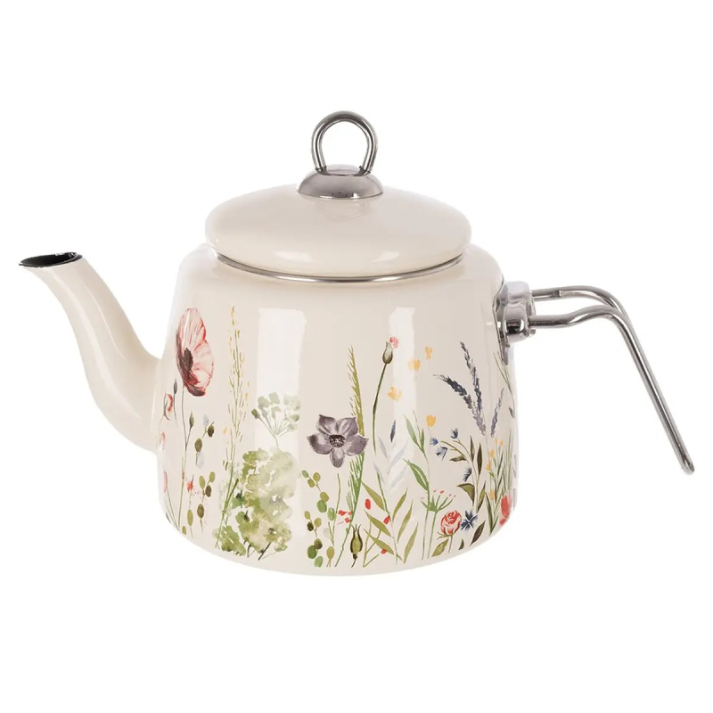 Světlý smaltovaný čajník MÁK s nerezovým lemem, kovovým držadlem a pokličkou má celkový objem 2 l a je zdoben decentním motivem. Hodí se k vaření vody na všech typech sporáků včetně indukce. Celý popis >