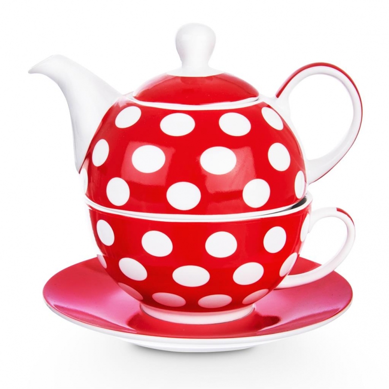 Souprava do sebe skladných konvice s hrníčkem s dekorem bílého puntíku na červeném podkladu Celý popis >