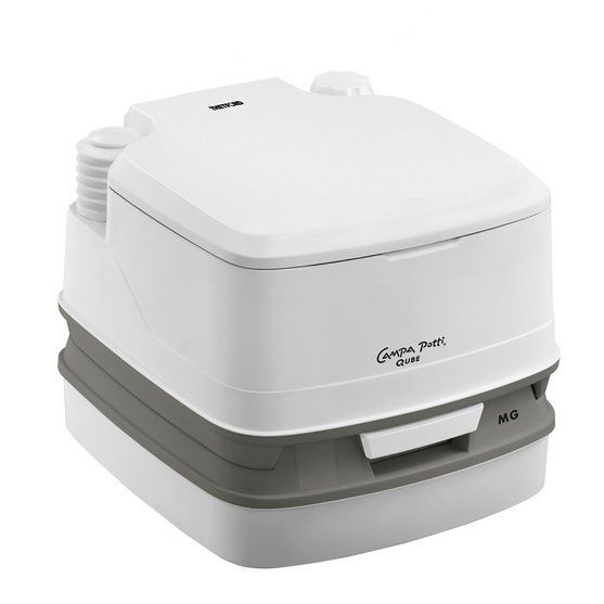 Jak Campa Potti Qube MG pracuje? Chemické WC se skládá ze dvou sekcí: horní díl obsahuje nádrž na vodu a mísu toalety s odnímatelným sedátkem. Spodní část je odpadní nádrž. Obě části toalety lze snadno spojit a rozpojit pomocí spony na zadní straně. Campa Potti Qube MG není vybavena indikátorem úrovně naplnění odpadní nádrže (indikátor obsahují pouze modely Excellence a XGL). Je vybavena unikátní rotační výpustí, díky které je vyprazdňování snadné. Není potřeba cokoliv rozebírat nebo čistit samostatné části. Tlačítko ventilačního otvoru na odpadní nádrži zabraňuje nepříjemnému rozstřikování během vyprazdňování.