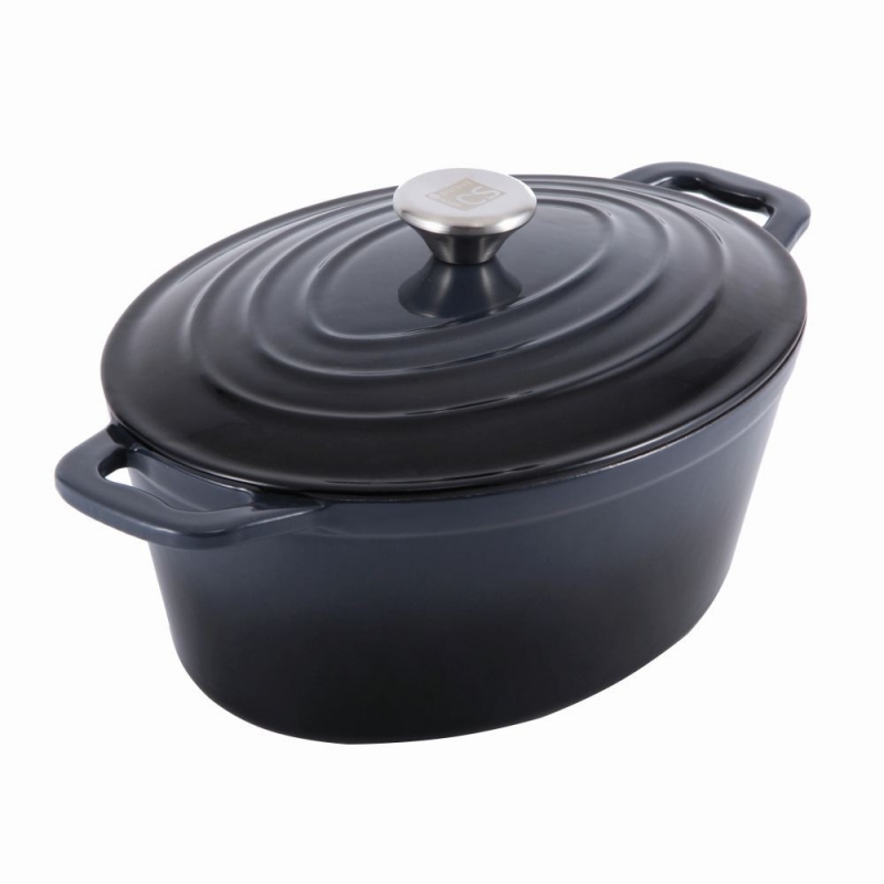 Robustní materiál vysoce odolný proti korozi i velmi vysokým teplotám. Perfektní pro pečení a zapékání v troubě, stejně jako k vaření, dušení či smažení na plotýnce sporáku. Vnitřní smaltovaný povrch je nepřilnavý, vysoce odolný proti odření a praskání a jelikož se potraviny nepřipalují, je také velmi nenáročný na údržbu. Masivní postranní rukojeti usnadňují manipulaci a servírování. Litina zajišťuje rychlé a rovnoměrné rozložení tepla po celém povrchu pekáče, výsledné pokrmy jsou tak dokonale propečené. Teplotu udržuje pekáč ještě dlouhou dobu po skončení vaření a jídlo uvnitř tak zůstává dlouho teplé. Pekáč je díky tomu také velmi vhodný pro přímé servírování hotových pokrmů na stůl. Poklice je také litinová a je opatřena dostatečně velkým elegantním úchytem z nerezové oceli. Vhodný na všechny druhy sporáků i na indukci. Vhodný do trouby až do 260°C. Rozměry: 36 x 28 cm. Objem: 7,7 litru. Váha: 6,5 kg. Barva: černá. Výhody smaltovaného litinového pekáče: excelentní tepelná vodivost, úspornější a rychlejší příprava pokrmů, odolný proti korozi, dlouhotrvající nepřilnavý vnitřní povrch, snadno omyvatelný, teplotní odolnost až do 260°C, udržuje teplotu i po skončení vaření, komplexní použití na všech druzích sporáků i v troubě, dlouhá životnost.