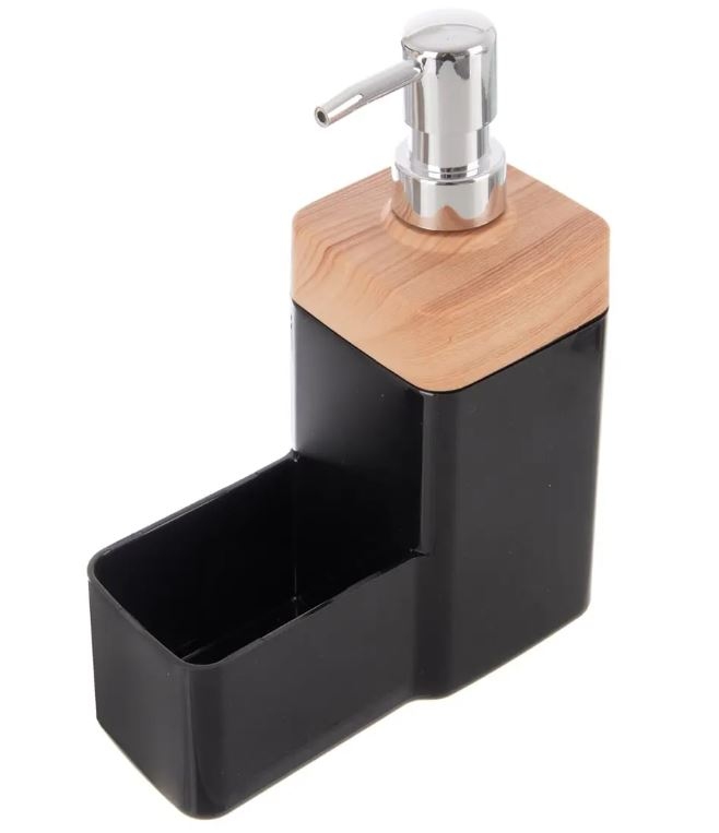 Dávkovač saponátu UH BLACK Wooden s organizérem 0,38 l černá