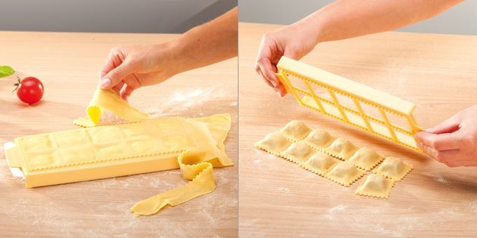 Plastová forma na 10 ks domácích čtvercových raviol Delícia od firmy Tescoma. Výrobek je vhodný do myčky nádobí. Celý popis >