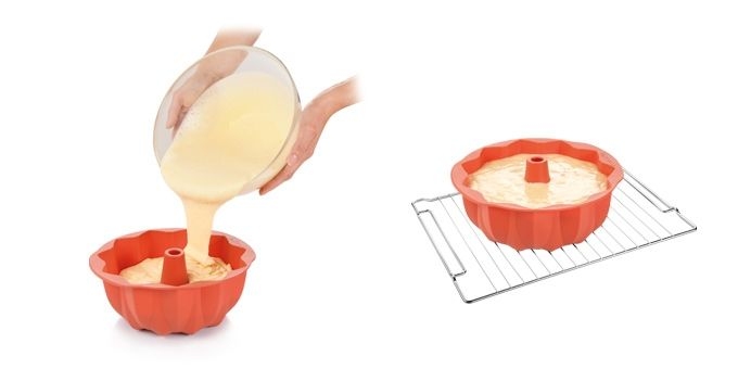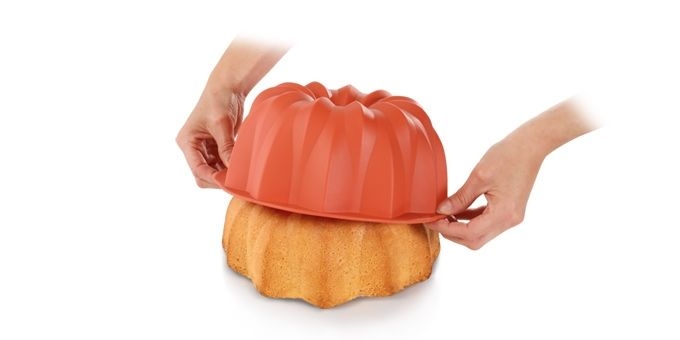 Bábovka připravená v designové formě DELÍCIA SiliconPRIME je atraktivní a má orginální tvar. Konstrukce a tloušťka formy byly pečlivě zvoleny tak, aby si bábovka během pečení zachovala dokonalou symetrii. Pečení v silikonové formě probíhá rychle, rovnoměrně a bez připalování, bábovka pečená při 170 °C je hotová za cca 70 minut. Díky speciální povrchové úpravě ,,sametový mat'' bábovku ze silikonové formy snadno vyklopíte. Vhodné do plynové, elektrické i horkovzdušné trouby. Dodáváno s originálními recepty včetně bezlepkové varianty. | Výrobce: | Tescoma |