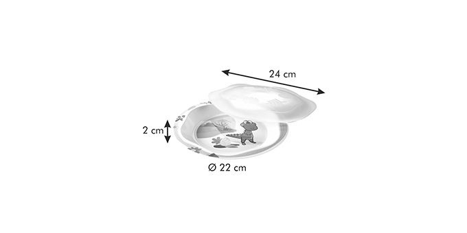 Je vyrobeno z prvotřídního vysoce odolného materiálu, dodáváno s unikátním transparentním poklopem. Pokrmy přikryté poklopem vydrží déle teplé, lze je ohřívat v mikrovlnné troubě a hygienicky skladovat v lednici. Nádobí vyrobeno z prvotřídního vysoce odolného materiálu, vhodné i pro ohřívání pokrmů v mikrovlnné troubě. Dna talířů a misek jsou opatřena protiskluzovou úpravou, takže nádobí při stolování neklouže. Originální dinosauří motivy upoutají dětskou pozornost. Vhodné pro děti od 6 měsíců.| Výrobce: | Tescoma |