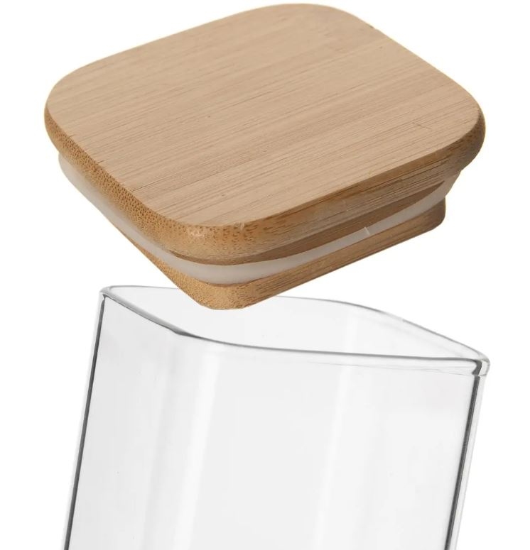 Dóza borosil. sklo/bambus 0,37 l hranatá