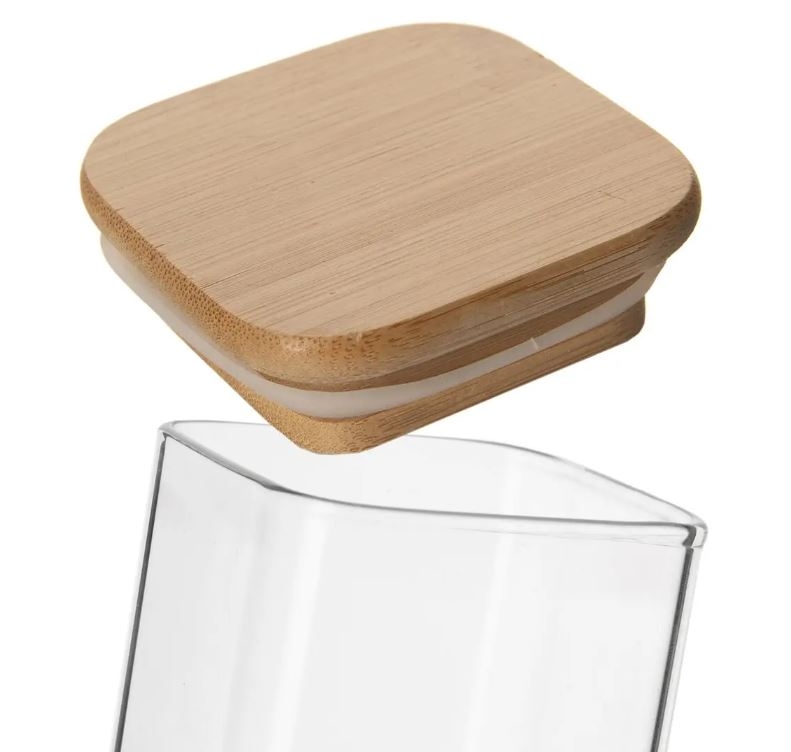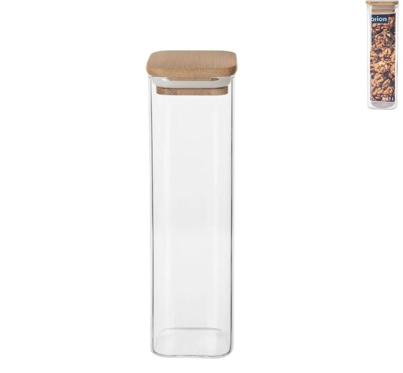 Dóza borosil. sklo/bambus 0,61 l hranatá