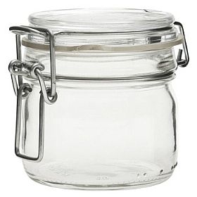 Dóza Fido z jakostního skla s hermetickým uzávěrem o objemu 0,2l. Celý popis >