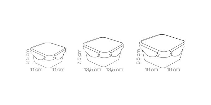 Dóza Freshbox 3ks, 0.4, 0.7, 1.2 l, čtvercová