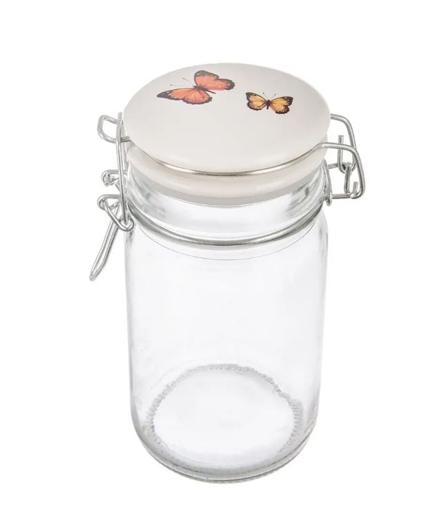 Dóza sklo/kov klip keramické víčko JARO motýl 0,25 l