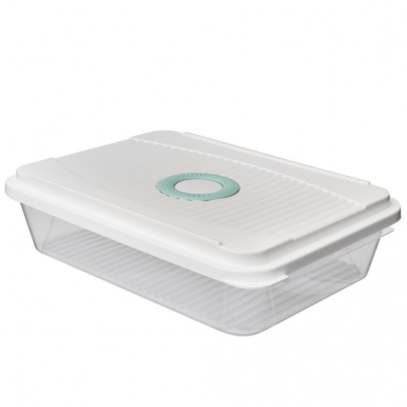 Dóza s víkem na ukládání a přenášení potravin. Ve víčku ovládací otvírání. Materiál: plast. Rozměry: objem 3,5 l, 32,5x23,5x8 cm. Použití od - 25 °C do 95 °C. Vhodná do chladničky, mrazničky a myčky.| Výrobce: | Orion |