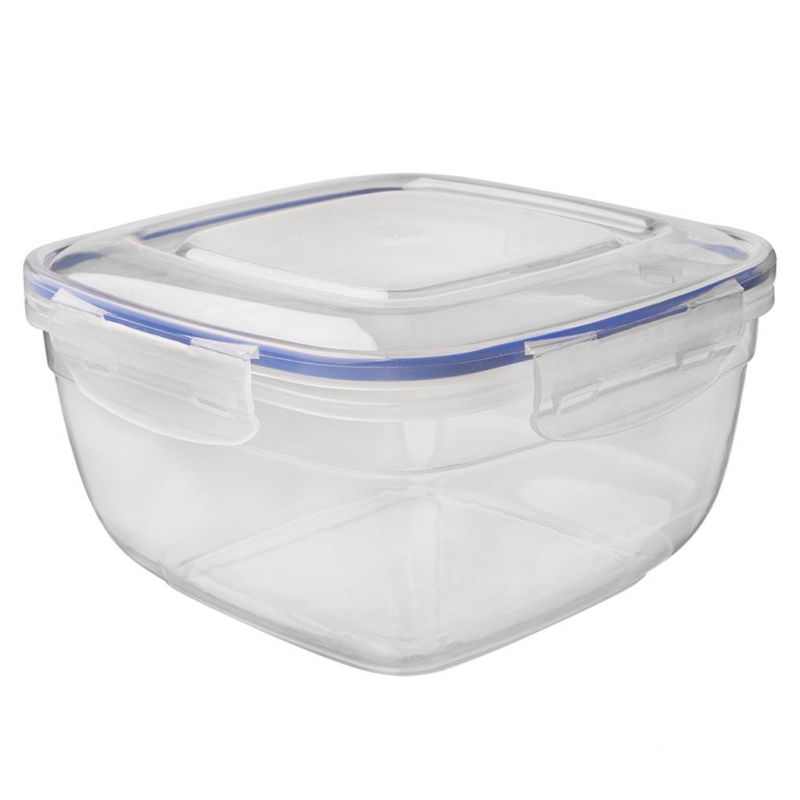 Transparentní hranatá dóza se silikonovým těsněním ve víčku a s klipy pro pevné uzavření. Stohovatelná. Vhodná do chladničky, mrazničky, MVT (bez víčka) i myčky na nádobí – použití od -25 do +95 °C. Materiál: plast, silikon. Rozměry: objem 0,9 l, 14,5x14,5x8 cm.| Výrobce: | Orion |