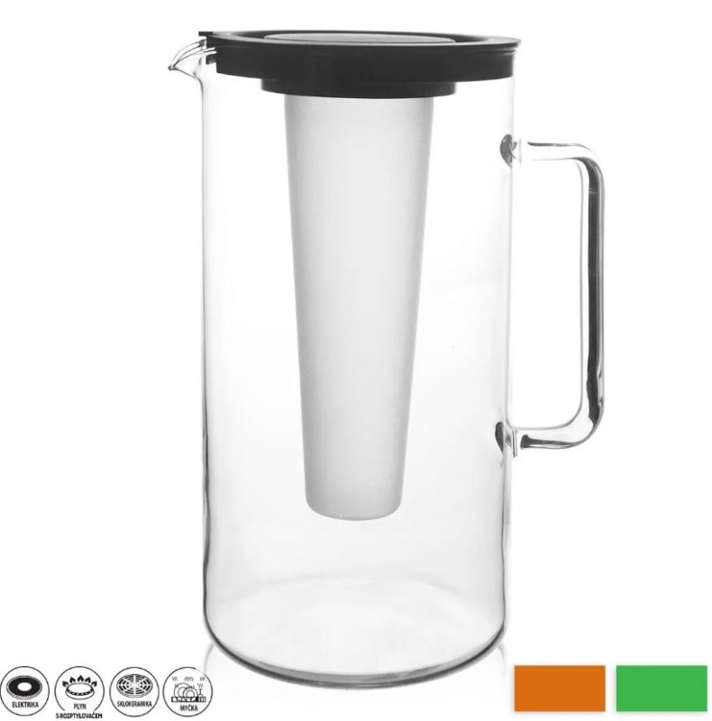 Džbán s uchem a výlevkou a navíc s víčkem s vložkou, do které můžete vložit led, který Vám nápoj ochladí, ale nezředí vodou z tajícího ledu. Celý popis >