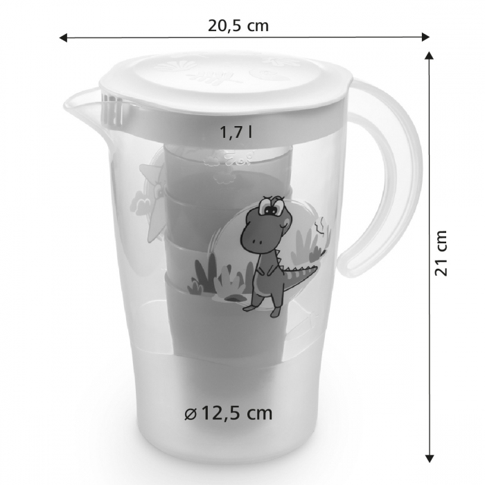 Džbán 1,7l z odolného plastu, se 4 pohárky Dino pro přípravu a podávání osvěžujících nápojů. Celý popis >