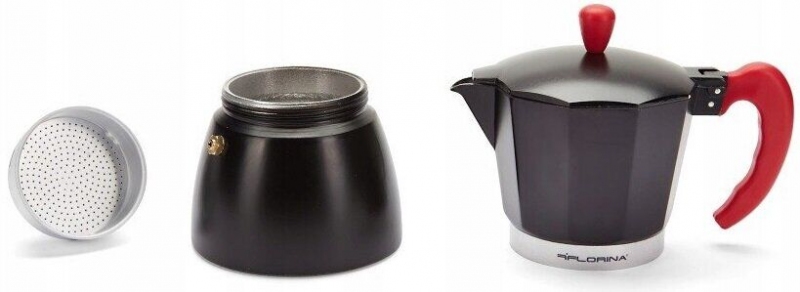 Moka konvička v černo-červené barvě Celý popis >