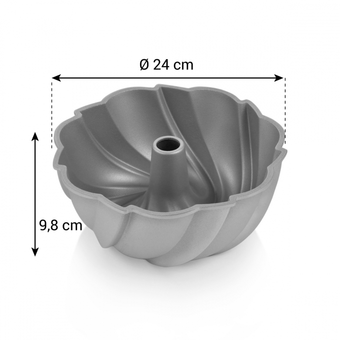 Díky pevnému kovovému korpusu formy a špičkovému antiadheznímu povlaku bude bábovka propečená rovnoměrně, bez připalování a z formy ji snadno vyklopíte.