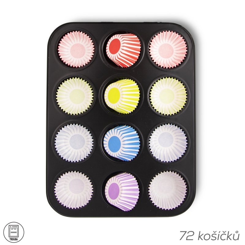 Forma kov muffiny 12+košík cuk. papír 72 ks