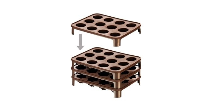 Vynikající pro přípravu originálních čokoládových bonbonů a řady dalších pochoutek v domácnosti i profesionální gastronomii. Vyrobeno z prvotřídního pružného a žáruvzdorného silikonu, hotová čokoláda se nelepí a lze ji snadno vyklopit. Dodáváno s praktickým stohovatelným stojánkem pro úsporu místa při použití. Vhodné do ledničky, mrazničky, mikrovlnné trouby a myčky. Recepty uvnitř balení. Manuál ke stažení zde.