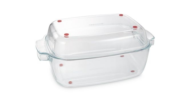 Je opatřen unikátními silikonovými žáruvzdornými nožkami, které slouží jako dokonalá tepelná ochrana při odkládání pekáče. Horký pekáč i s pokrmem můžete ihned po vytažení z trouby (bez použití podložky pod horké nádobí) bezpečně odložit přímo na kuchyňskou linku nebo stůl. Díky žáruvzdorným silikonovým nožkám se povrch kuchyňské linky ani jídelního stolu pod odloženým pekáčem nepoškodí. Unikátně řešené jsou také skleněné úchyty nádob i poklopů, které jsou ve spodní části „vykrojené“. Takto tvarované úchyty umožňují komfortní uchopení nádoby i poklopu, jak samostatně, tak společně. Poklopy pekáčů GrandCHEF jsou pro optimální cirkulaci horkého vzduchu v uzavřeném pekáči dostatečně vysoké. Pokrmy jsou díky tomu rovnoměrně propečené, uvnitř šťavnaté a mají křupavou kůrku. Skleněné pekáče GrandCHEF jsou vhodné do všech typů pečicích trub. Poklop a nádobu lze používat i samostatně, jako nízký a hluboký pekáč. Silnostěnné žáruvzdorné sklo je vysoce odolné a snadno se čistí.| Výrobce: | Tescoma |