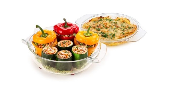 Je opatřen unikátními silikonovými žáruvzdornými nožkami, které slouží jako dokonalá tepelná ochrana při odkládání pekáče. Horký pekáč i s pokrmem můžete ihned po vytažení z trouby (bez použití podložky pod horké nádobí) bezpečně odložit přímo na kuchyňskou linku nebo stůl. Díky žáruvzdorným silikonovým nožkám se povrch kuchyňské linky ani jídelního stolu pod odloženým pekáčem nepoškodí. Unikátně řešené jsou také skleněné úchyty nádob i poklopů, které jsou ve spodní části „vykrojené“. Takto tvarované úchyty umožňují komfortní uchopení nádoby i poklopu, jak samostatně, tak společně. Poklopy pekáčů GrandCHEF jsou pro optimální cirkulaci horkého vzduchu v uzavřeném pekáči dostatečně vysoké. Pokrmy jsou díky tomu rovnoměrně propečené, uvnitř šťavnaté a mají křupavou kůrku. Skleněné pekáče GrandCHEF jsou vhodné do všech typů pečicích trub. Poklop a nádobu lze používat i samostatně, jako nízký a hluboký pekáč. Silnostěnné žáruvzdorné sklo je vysoce odolné a snadno se čistí. | Výrobce: | Tescoma |
