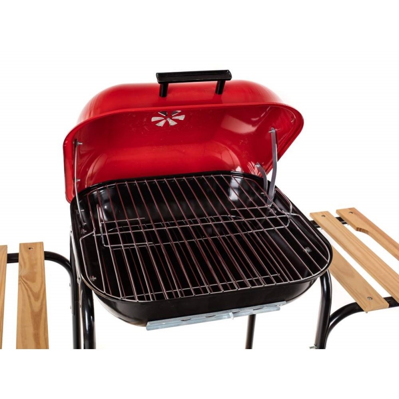 Velký party gril s dřevěnými odkládacími policemi. Celý popis >