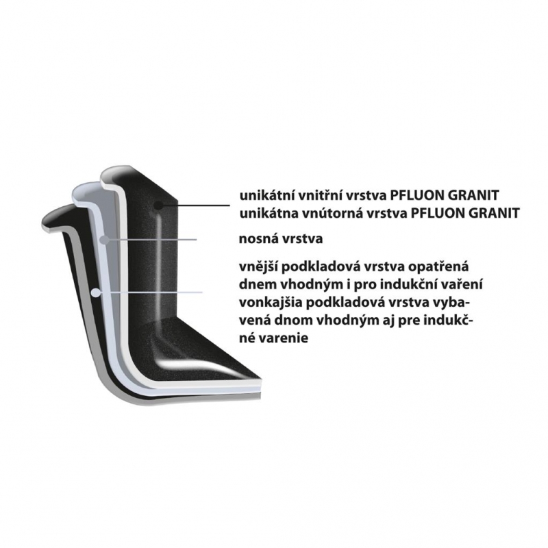 Materiál: hliník s vynikajícím nepřilnavým povrchem PFLUON GRANIT a s profilovaným dnem, sklo, nerez.