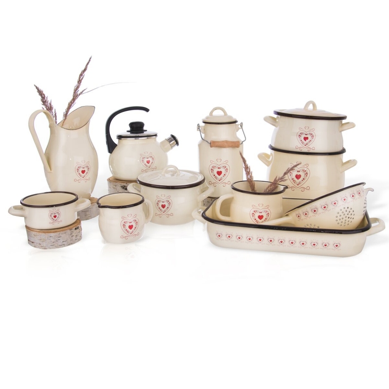 Smaltovaný hrnec s poklicí se stylovým dekorem. Celý popis >