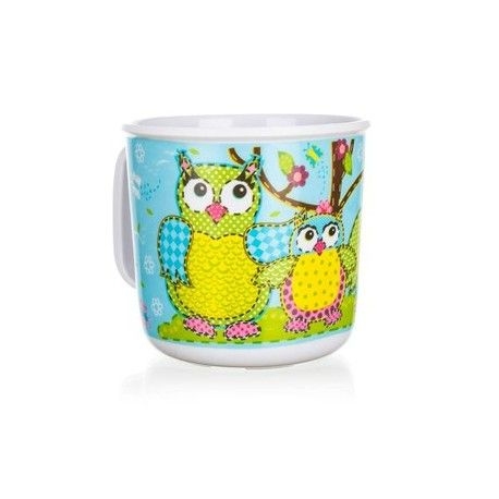 Dětský hrneček vyrobený ze 100% melaminu s ouškem pro pohodlné držení a přenášení s motivem Soviček. Maximalní teplota nápoje do 70°C. Hrnek není vhodný do mikrovlnné trouby ani myčky na nádobí. Průměr hrnku je 8 cm a jeho výška je 7,5 cm.