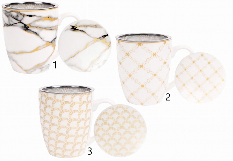 Hrnek ker.NOVO 360ml+sítko NR+víčko 3 dekory