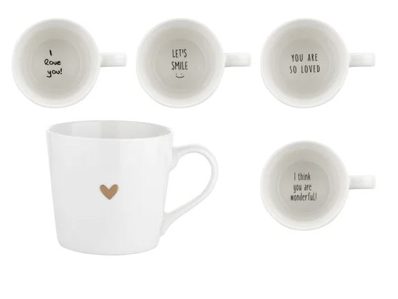 Keramický hrnek s dekorem zlatého srdce a citátem uvnitř hrnku. Objem 400ml. MIX CITÁTŮ - náhodný, dle skladových zásob dodavatele.| Výrobce: | Florentyna |