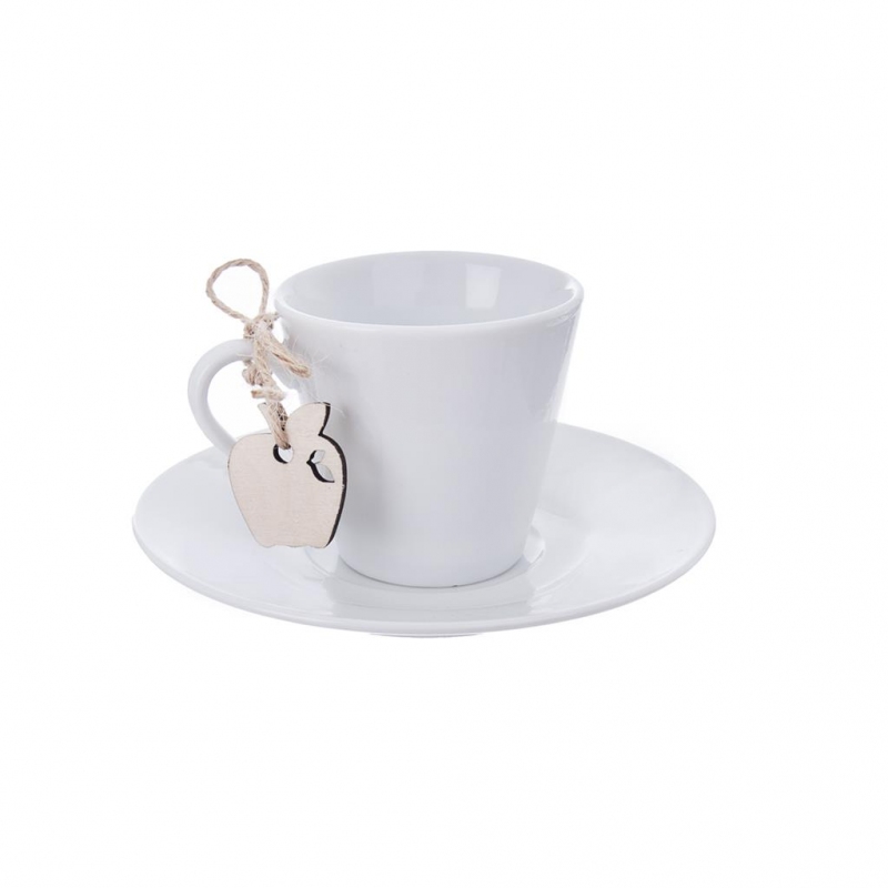 Hrnek porc. 0,09 l podš.+visačka dřevo jablíčko