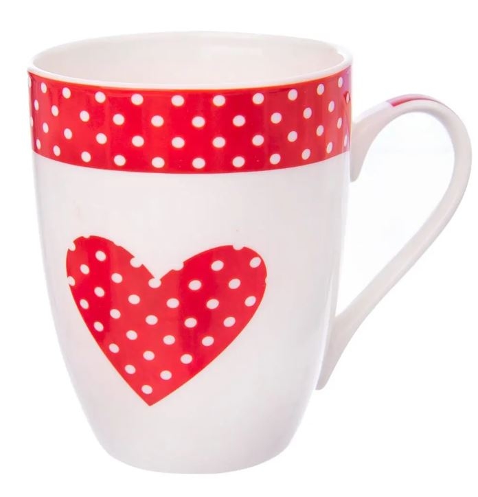 Hrnek s uchem s dekorem puntík a srdce. Celý popis >
