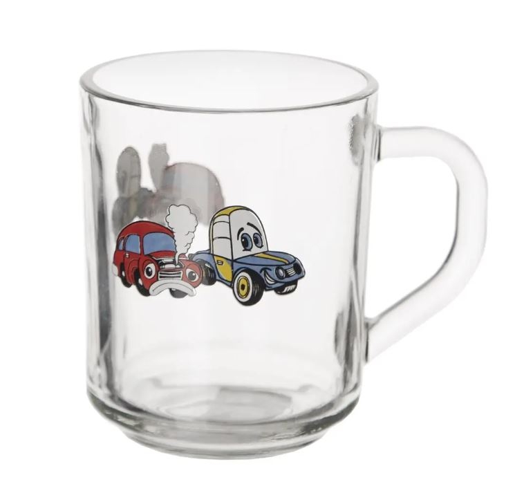 Hrnek s uchem. Materiál: sklo. Dekor AUTO. Celý popis >