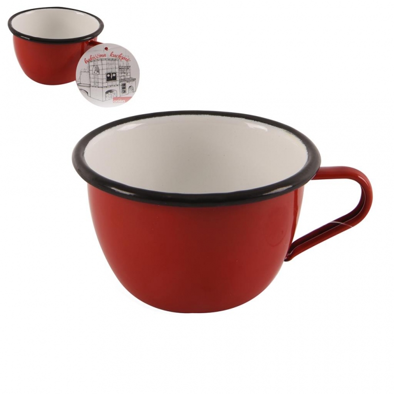 Hrnek smaltovaný s uchem. Vhodný do myčky nádobí. Rozměry: pr. 11 cm, v. 6,5 cm, objem 0,43 l. Barva: červená, bílá.| Výrobce: | Orion |