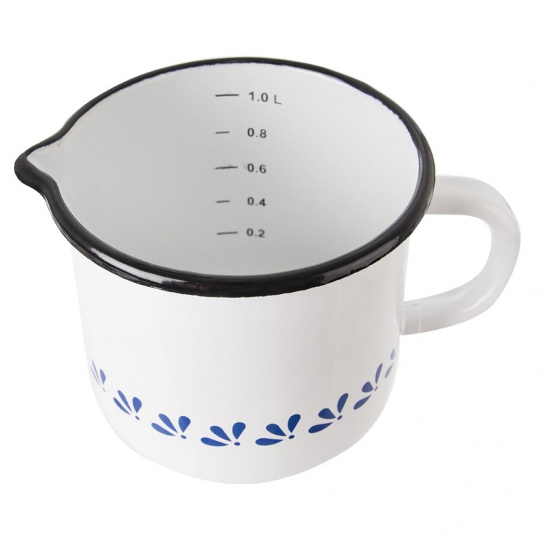 Hrnek smaltovaný MODROTISK s odměrkou 12 cm
