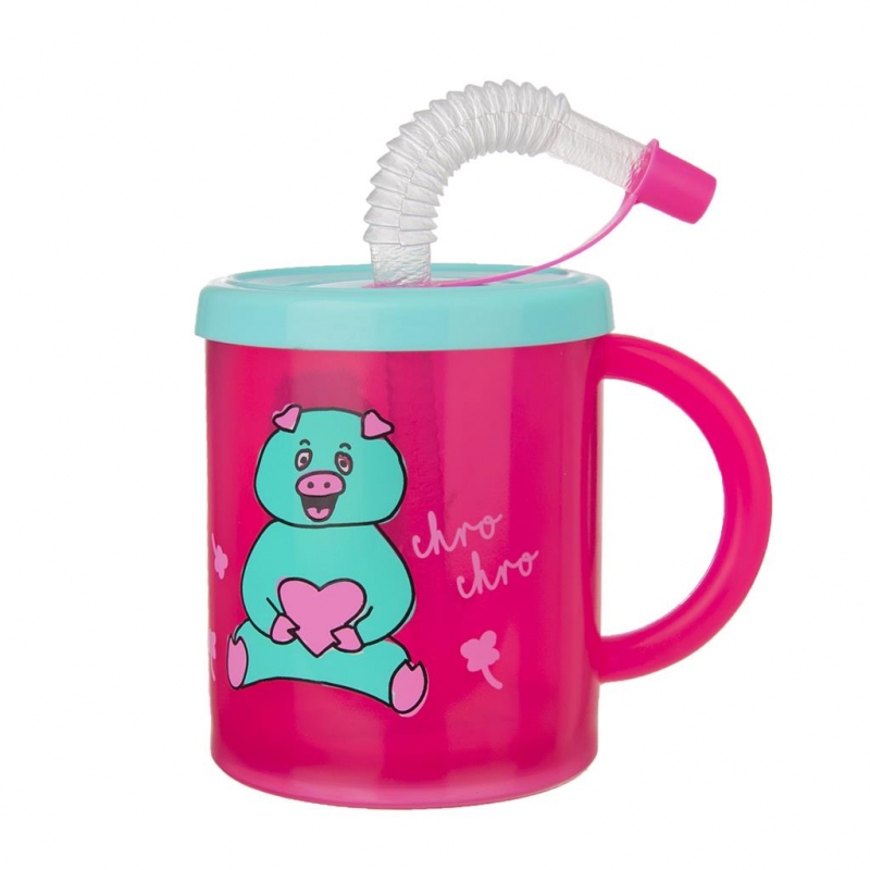 Dětský hrníček s víčkem a brčkem, motiv prasátko. Objem 0,3 l, pr. 7 cm, v. 8,5 cm Celý popis >