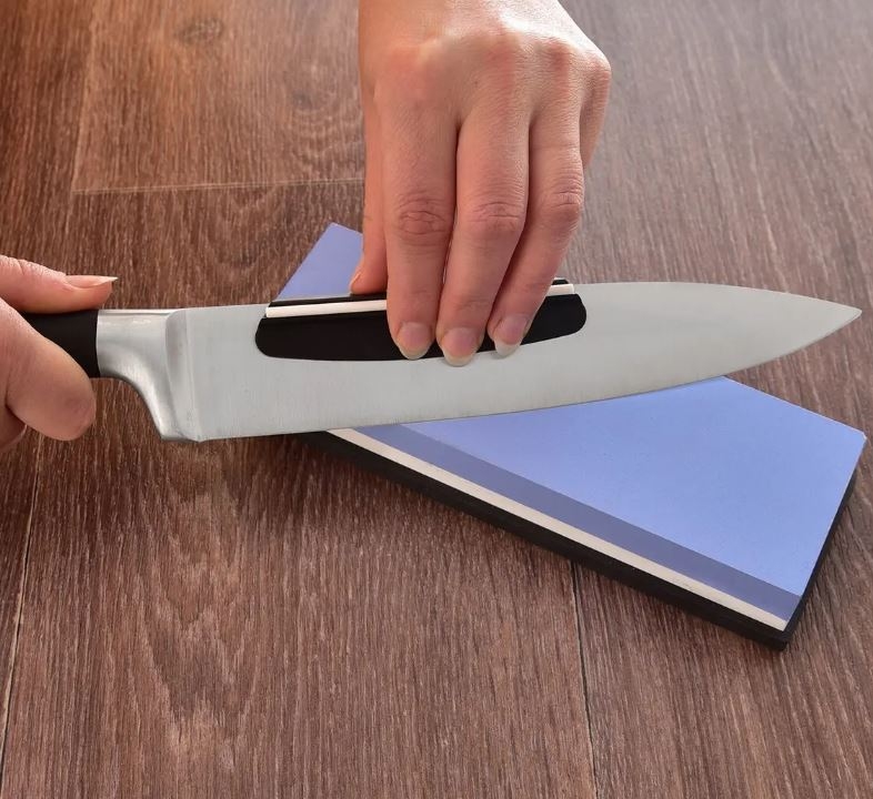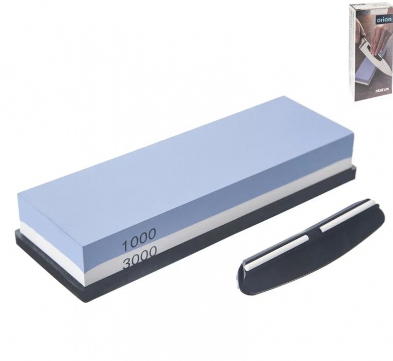 Kámen brusný korund 1000/3000+podložka+úchyt na nože