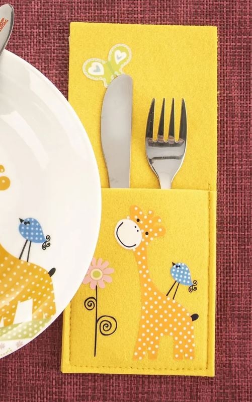 Kapsa na příbory s dětským dekorem ŽIRAFA ozdobí prostřený stůl. Materiál: polyester (filc), plastový potisk. Rozměry: 21x9 cm.| Výrobce: | Orion |