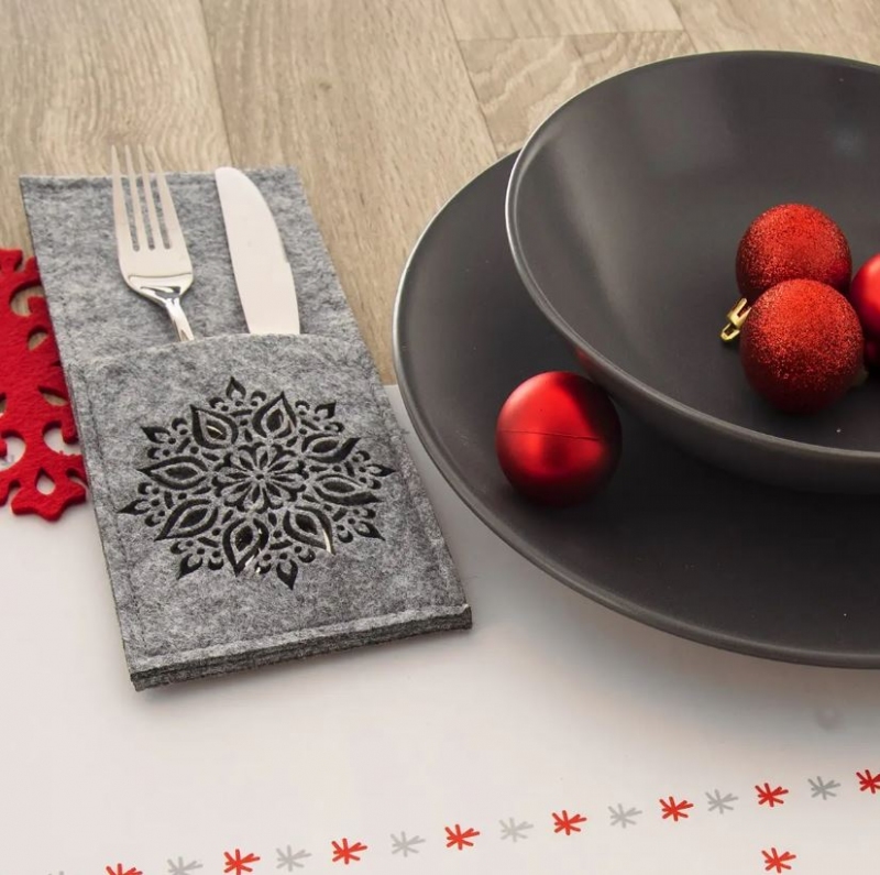 Kapsa na příbory ozdobí prostřený stůl. Sada 2 ks. Materiál: polyester (filc). Rozměry: 23x10 cm, v. 0,3 cm. Celý popis >