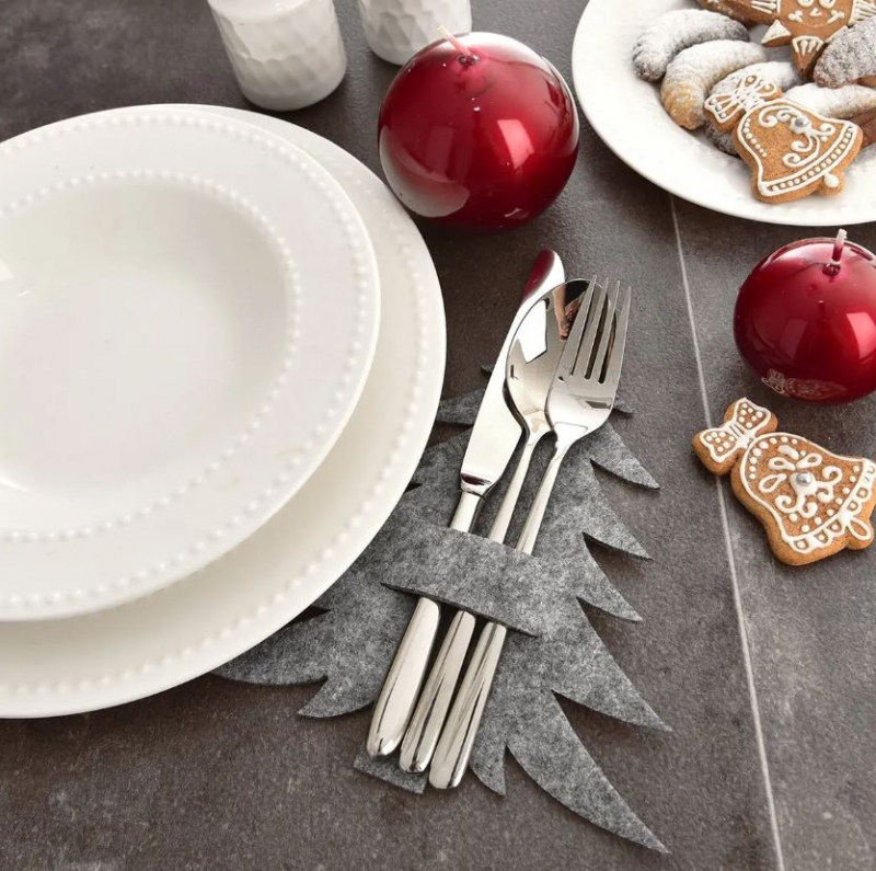 Kapsa na příbory ozdobí prostřený stůl především v době Vánoc. Sada 2 ks. Materiál: polyester (filc). Rozměry: 18x18 cm, v. 0,3 cm. Celý popis >
