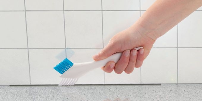 Oboustranný kartáček na spáry v kuchyni, koupelně apod. Clean Kit od firmy Tescoma. Velmi odolný a praktický pomocník. Celý popis >