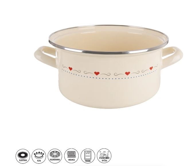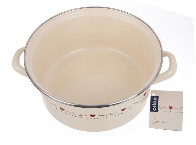 Smaltované nádobí nabízí možnost zdravého vaření bez uvolňování nebezpečných a nežádoucích látek do jídel. Nádobí naakumuluje teplotu a dlouho ji udrží. Vyznačuje se dlouhou životností, zdravotní nezávadností pro alergiky, univerzálním použitím. Sortiment smaltovaného nádobí v provedení TONČA doplňuje nerezové kování, tato řada zahrnuje hrnce, kastroly, rendlík, dózy, džezvu a čajník. Kastrol se výborně hodí na přípravu polévky, omáčky, vaření těstovin, brambor a jiných příloh... Materiál: smaltovaný plech, nerez (lem). Rozměry: objem 4 l, vnější pr. 24 cm, vnitřní pr. 22 cm, v. 11 cm. Je vhodný na všechny typy spotřebičů včetně indukce, do trouby, do myčky na nádobí. Není vhodný do MVT. Na tento kastrol se hodí skleněná poklice z naší nabídky 122579.| Výrobce: | Orion |