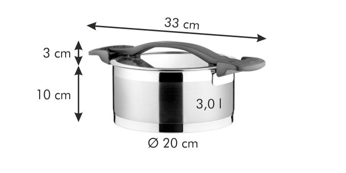 Kastrol ULTIMA s poklicí prům. 20cm, 3,0l s revolučním systémemm regulace páry a cezení, poklice s 3 pracovními polohami, z vysoce kvalitního nerezu, vhodné do myčky nádobí a na všechny typy sporáků Celý popis >