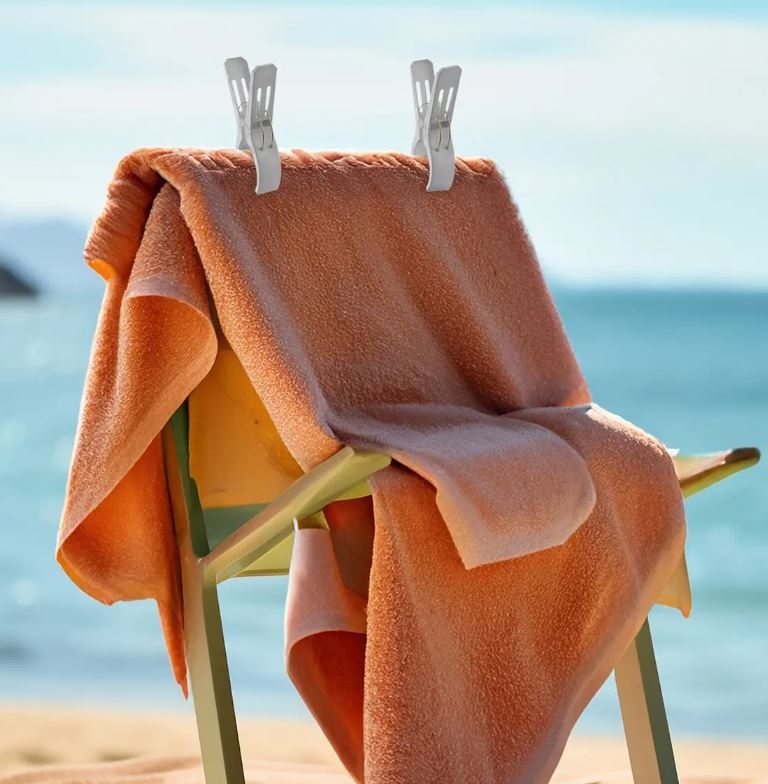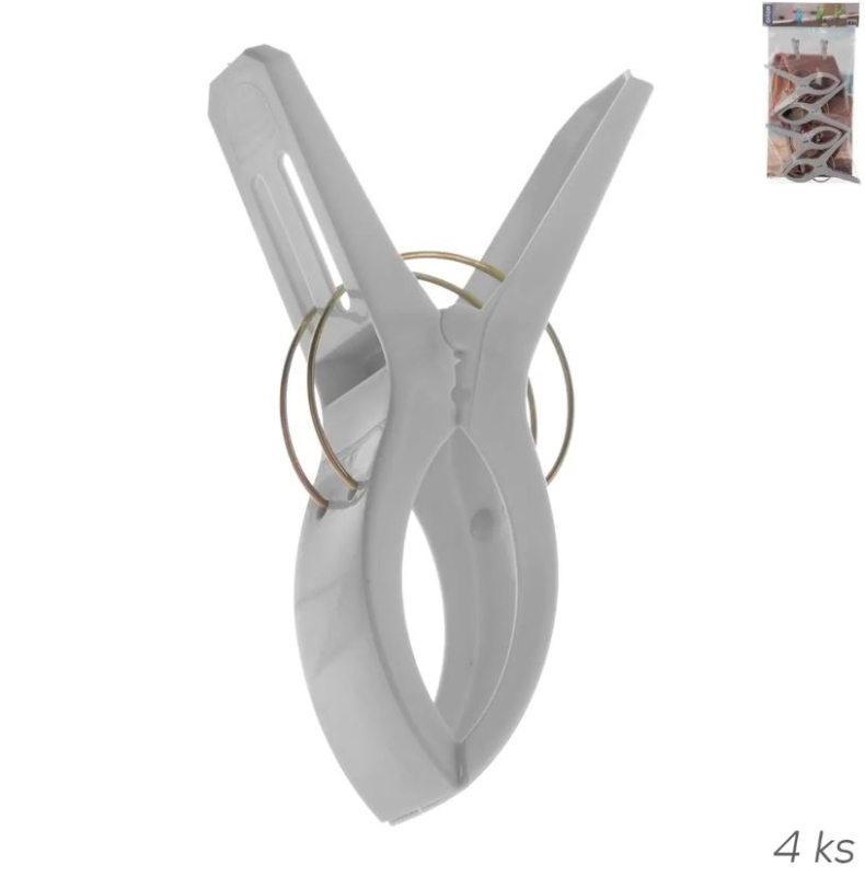 Klipy na plážové ručníky udrží ručník nebo osušku na lehátku i ve větrnějším počasí. Nebudete je muset chytat nikde po pláži ani při povětří. Uplatnění je velmi široké, připevní ručníky také k židlím, přidrží plachtu u stanu, peřinu nebo deku na šňůře nebo bidle, mohou nahradit i kolíčky v případě sušení většího prádla, může přichytit ubrus ve větrném počasí, závěs nebo záclonu při průvanu... Určitě si je vezměte s sebou na dovolenou ke stanu, do karavanu, budou se hodit na kde co. Sada 4 ks. Materiál: plast PP, kov. Rozměry: 15x2,7x10,3 cm.| Výrobce: | Orion |